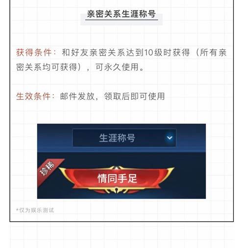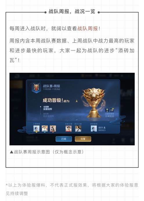 以下为体验服爆料,战队再续情谊无上限!还有亲密关系个性称号、荣耀荣耀